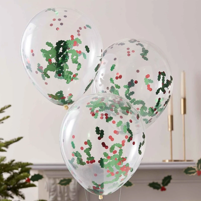 Add festive cheer to this Christmas with these confetti filled balloons. Balloons transform any ordinary party area into a special one and these transparent balloons filled with holly and berry confetti are just perfect for a merry Christmas celebration.