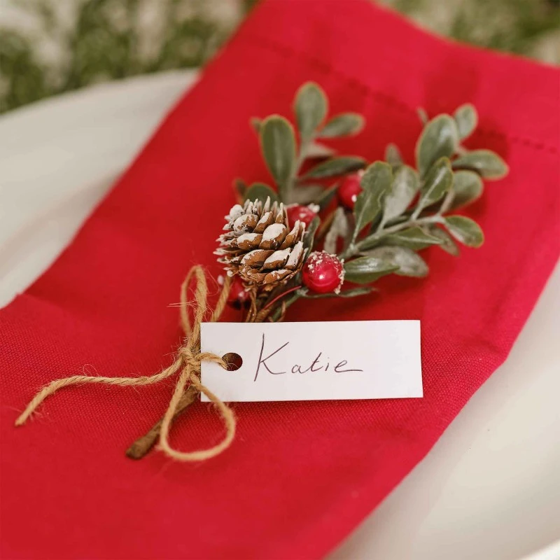 Rustic Red Place Card Holders – Each pack contains 6 x Red berry sprig 15cm (H), twine and white place cards.